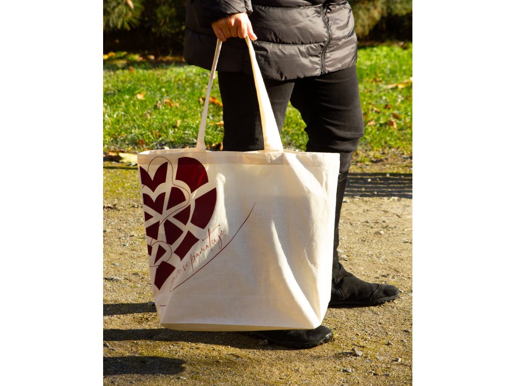 Plátěná taška Srdce si pamatuje v sobě spojuje praktičnost, krásu i hlubší myšlenku.